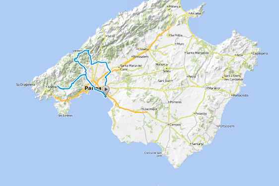 Voit ajaa pääkaupunki Palman ohitse ja ehdit lämmitellä noin 20 km ajan ennen vuoristoa. Halutessasi ajaa Palman läpi, on matkaa vuoristoon noin 10 km, satama-alueen kohdalla, noin 3 kilometrin matkalla on yleensä paljon liikennettä.