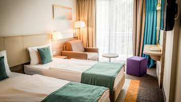 Halutessasi mieluummin viettää päivää meren rannalla pääset rannalle hotellin ilmaisella bussikuljetuksella, tai kävellen pidemmän matkan läpi Albenan vehreiden maisemien.