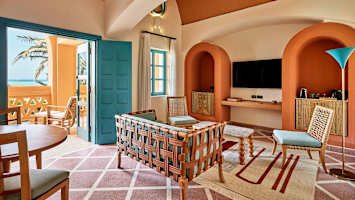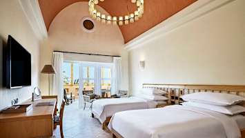 Sheraton Miramar Resort El Gounassa asut tilavassa, lämpimin värein sisustetussa huoneessa tai juniorsviitissä, jossa on joko parveke tai terassi.