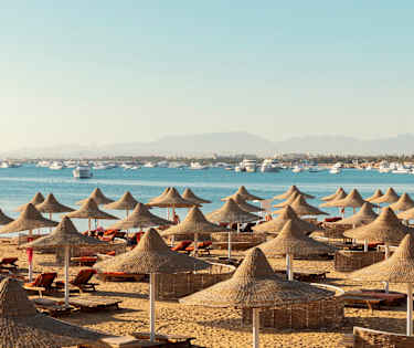 Useimmilla hotelleilla on omat rantansa, joilla on aurinkotuoleja ja -varjoja. Jos haluat pitää taukoa auringonotosta, tekemistä riittää paljon. Sinulla on mahdollisuus harrastaa eri vesiurheilulajeja, esim. lähteä vene- tai snorklausretkelle, purjelautailemaan, sukeltamaan tai osallistua sukelluskurssille. Jos kaipaat vaihtelua, voit lähteä tutustumaan Hurghadan ympäristön lukuisiin muihin rantoihin. Maksua vastaan voit vierailla myös muiden hotellien rannoilla. Yleisiä rantoja on muutamia, mutta näillä rannoilla ei ole palveluita, ja lisäksi niihin on sisäänpääsymaksu.