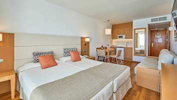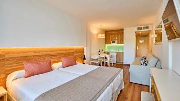 Tässä hotellissa on tarjolla tietyillä lähdöillä kampanjahintaisia yksiöitä (yksin matkalla/Pieni Perhe) sinulle, joka on lähdössä matkaan yksin tai yhdessä yhden lapsen tai teinin kanssa. Paikan päällä hotelliin saapuessasi selviää minkä huoneistotyypin tulet saamaan.