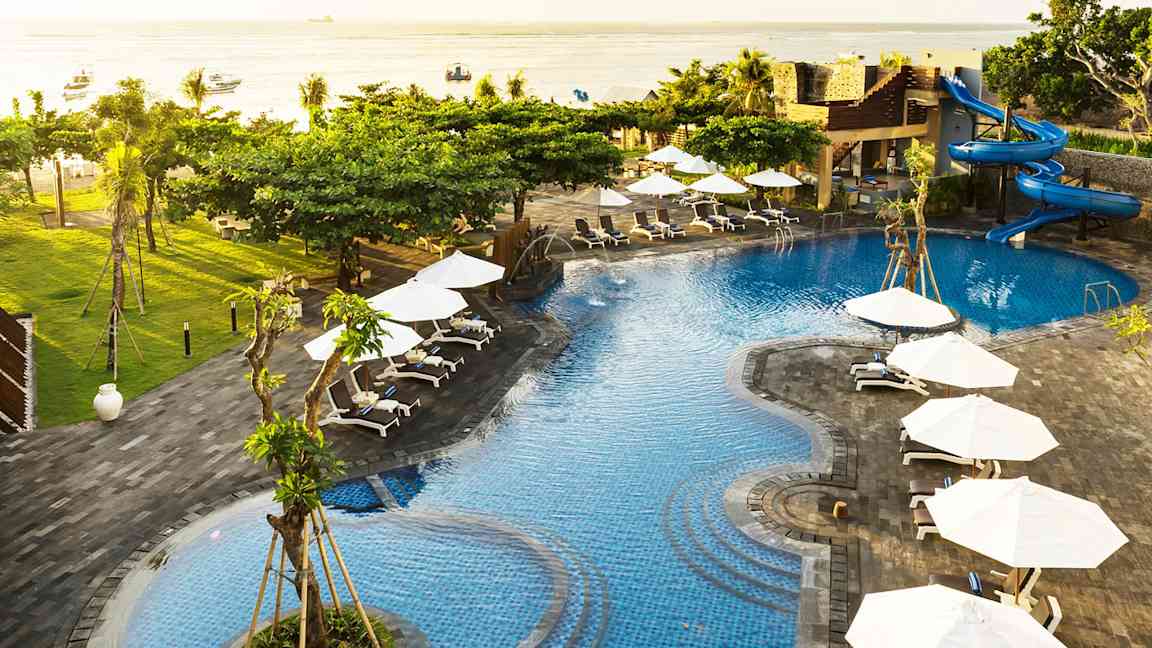 Tjäreborgilla on monipuolinen hotellivalikoima Indonesiassa ja Balilla. Täällä on kaikenlaisia hotelleja yksinkertaisemmista kahden aallon hotelleista ylellisiin viiden aallon vaihtoehtoihin. Useat hotellit sijaitsevat suoraan rannalla ja useimmissa hotelleissa on uima-allas. Jos matkustat Balille lasten kanssa, mainio vaihtoehto on lapsiystävällinen Bali Dynasty Resort, jossa on leikkipaikka, lastenkerho ja vesiliukumäkiä.