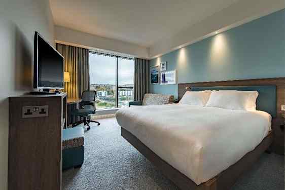 Seuraavat palvelut ja mukavuudet ovat saatavilla, mutta **rajoitetulla palvelulla**: liikekeskus, aamiainen, paikan päällä olevat ravintolat. Seuraavat palvelut ja mukavuudet eivät ole tällä hetkellä saatavilla: kuntosali. Tervetuloa valoisaan Hampton by Hilton Edinburgh West End -hotelliimme, joka sijaitsee Edinburgh City Centren sydämessä lähellä kaikkia nähtävyyksiä, ostosmahdollisuuksia, liiketiloja ja Haymarket Train Stationia. Sijaitsemme vain noin 11 kilometrin päässä Edinburgh Airport (EDI) -lentokentältä ja kävelymatkan päässä Edinburgh International Conference Centeristä, mikä tekee ystävällisestä hotellistamme ihanteellisen majoituspaikan niin liike- kuin vapaa-ajan matkailijoille. Rentoudu yhdessä tilavista huoneistamme puhtaassa ja raikkaassa Hampton bed® -vuoteessa ja hoida työasiat suurella työpöydällä ergonomisen tuolin ääressä. Tunne olosi kotoisaksi mukavassa huoneessa ja katso HDTV:täsi rauhassa ja mukavasti. Koska lämmin aamiainen sisältyy hintaan jokaisessa Every Stay -varauksessa, voit aloittaa päiväsi oikealla ja energisellä tavalla. Meillä on 24 tuntia vuorokaudessa avoinna oleva keskus, josta on saatavilla virvokkeita ja muita tarpeellisia tuotteita mihin tahansa aikaan vuorokaudesta. Ystävälliset tiimimme jäsenet ovat valmiina suosittelemaan sinulle erinomaisia lounas- ja illallisvaihtoehtoja Edinburghissa. Täysin ilmastoitu Hampton by Hilton Edinburgh West End -hotellimme tarjoaa yhden kokoushuoneen, joka on käytettävissä enintään kuudelle henkilölle. Olemme 100 % savuton hotelli, jossa on 24 tuntia avoinna oleva liikekeskus ja ilmainen Wi-Fi-yhteys kaikkialla hotellissa. Toivomme näkevämme sinut pian täällä meillä.
