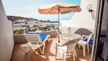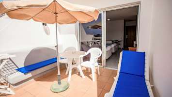 - Parveke (kaksi aurinkotuolia, yksi aurinkovarjo ja kiinteä, ei siirrettävä sohva)