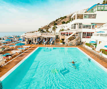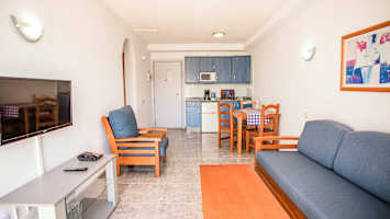 Kaksio ja terassi (samassa tasossa kuin allasalue)