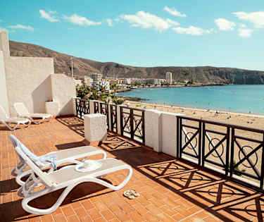 varrella. Laiturin ja aallonmurtajan suojaama Los Cristianosin ranta sijaitsee aivan hotellin alapuolella. Jos mieluummin haluat nauttia auringonsäteistä omassa hotellissasi, katolla on