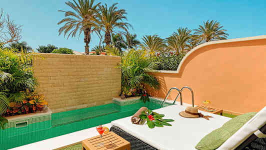 Hotellin avara ja houkutteleva allasalue tarjoaa täydelliset puitteet rentoutumiselle. Voit istahtaa mukavaan aurinkotuoliin tai loikoilla balisängyssä, kun taas lapset puolestaan viihtyvät omassa matalassa altaassaan pulikoimassa. Kun kaipaat hetkeksi varjoa auringosta nauttimiseen tai haluat illalla kerrata päivän kokemuksia, Las Palmeras -baarissa on tarjolla raikkaita juomia. Samannimisessä buffetravintolassa on tarjolla sekä paikallisia herkkuja että kansainvälisiä suosikkeja, joten koko perheen on helppo löytää omat mieluisat vaihtoehtonsa, olipa toiveena päästä tutustumaan uusiin makuihin tai pysytellä omissa vanhoissa suosikeissa. Halutessasi voit lisätä lomaan mukavuutta ja helppoutta ostamalla jo etukäteen aamiaisen, puolihoidon tai All Inclusiven.