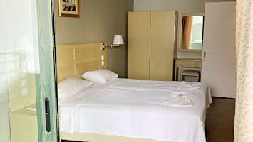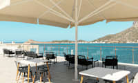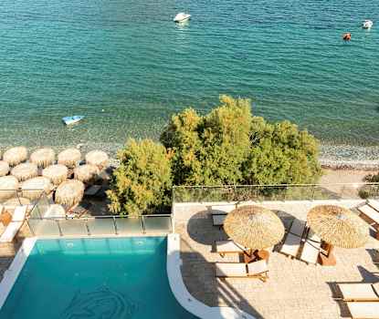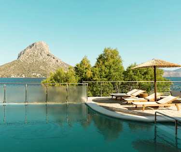 Hotellin hienolta, pieneltä allasalueelta on näkymät merelle ja naapurisaari Telendokselle päin.