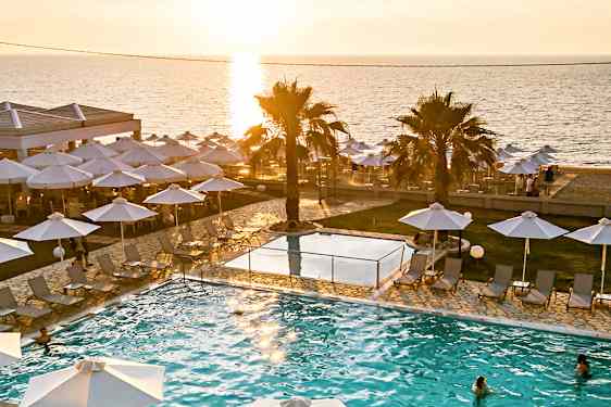 Hotellin ihastuttavaa allasaluetta ympäröivät nurmikentät, joilla on tilaa leikkiä ja temmeltää. Allasalueen vieressä on suosittu ravintola, jonka terassilta voit ihailla myös merimaisemia. Ravintolassa tarjoillaan hintaan sisältyvä buffetaamiainen, ja jos haluat viettää vaivatonta lomaa, varaa lisämaksusta puolihoito ennen matkaa.