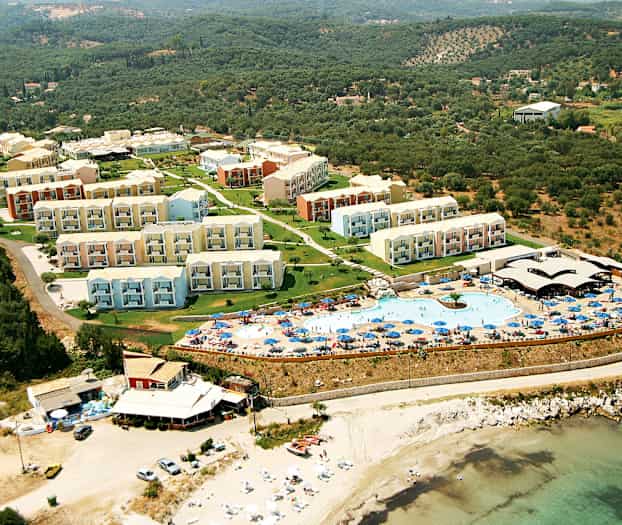 Mareblue Beach -hotellista, joka sijaitsee Agios Spiridonasissa, on suunnilleen sama matka, n. 5 km, sekä Acharavin että Kassiopin kylään.