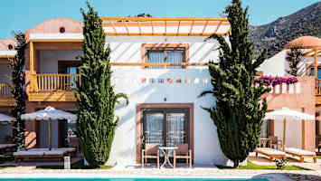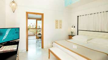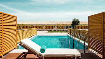 Kahden hengen huone, josta pääsy yhteiseen uima-altaaseen