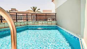 Triplettihuone Superior, 3 huonetta, neljä normaalia vuodetta ja oma uima-allas