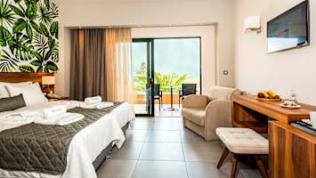 Solimar Aquamarinen huoneet ovat mukavat ja hienot, ja halutessasi vielä vähän ekstraa voit varata huoneen, johon kuuluu myös oma uima-allas.