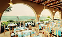 Hotellissa on kaksi ravintolaa. Aamiainen, lounas ja illallinen tarjoillaan buffetravintolassa, jossa järjestetään myös teemailtoja useamman kerran viikossa. À la carte -ravintolassa on tarjolla kreikkalaisia ja kansainvälisiä ruokia, ja allasbaarista saa myös pientä syötävää sekä snackseja.