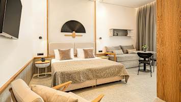 Kun haluat tutustua lähialueeseen, voit tehdä kävelyretken jollekin hienolle rannalle, joita on lähistöllä useita. Tai ota paikallisbussi viehättävään Hanian kaupunkiin, joka sijaitsee runsaan neljän kilometrin päässä. Venetsialaisessa satamassa on mukava herkutella vaikka jäätelöllä tai nauttia kupillinen kahvia jollakin mutkittelevista kujista. Kannattaa myös jatkaa iltaa maukkaalla illallisella kaupungilla. Jos mieluummin palaat omaan hotelliin, voit halutessasi päättää illan hyvällä aterialla omalla parvekkeellasi tai terassillasi.