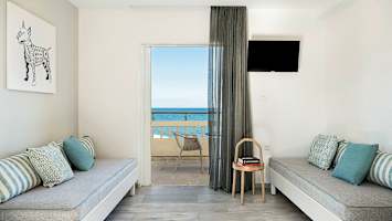 Tropicana Beach Hotel -hotellissa asut valoisassa ja raikkaassa huoneistossa, jossa on tilaa jopa neljälle hengelle. Varausvaiheessa voit valita, haluatko näkymän ympäristöön vai merelle päin.