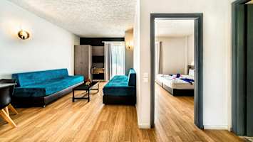 Bella Casita Family Apartmentsissa asut viihtyisässä yksiössä tai kaksiossa, johon mahtuu jopa neljä henkeä. Parveke ympäristön suuntaan.