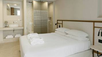 Asut valoisassa ja raikkaassa kahden hengen huoneessa, jossa on joko parveke tai terassi. Tietyistä huoneista on näkymät allasalueelle, jolla aurinkotuolit kutsuvat rentoutumaan. Hotellin viihtyisästä baarista voi tilata juomia ja snackseja päivisin - täydellistä kun haluat pitää taukoa auringossa loikoilusta.
