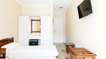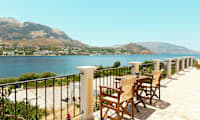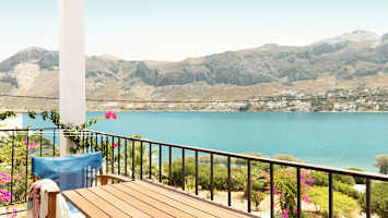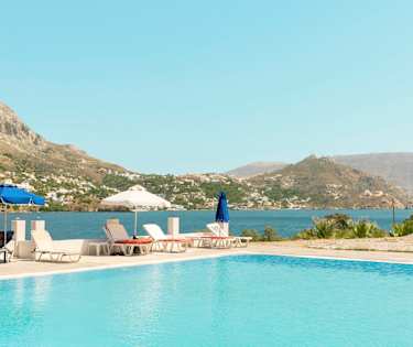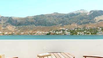 Hotellin avaralta allasalueelta avautuvat kauniit maisemat merelle ja Kalymnoksen suuntaan. Lähimmällä pienellä sorarannalla on muutamia aurinkotuoleja vuokrattavissa.