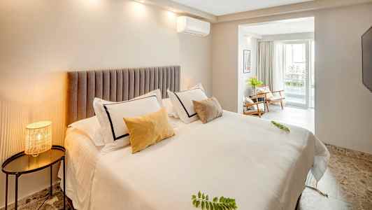 Hotel Osam - Adults Only -hotellin tyylikkäissä huoneissa on joko parveke tai terassi ja näkymät joko ympäristöön tai merelle päin.