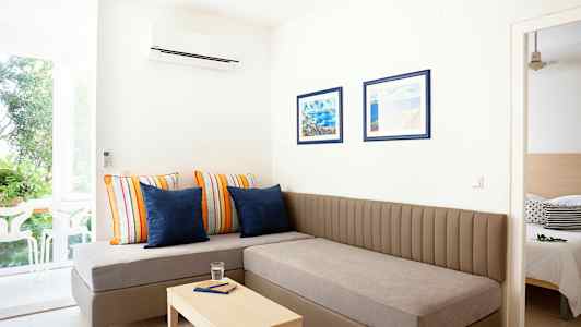 Tervetuloa Tjäreborgin Family Garden -hotelliin, Waterman Supetrus Resortiin, joka sopii täydellisesti koko perheelle! Hotelli sijaitsee vehreässä ympäristössä Supetarin kylän ulkopuolella. Hotellista on mukava kävelymatka kylän viehättävään satamaan, jossa on kauppoja, ravintoloita ja baareja. Hotellialue on laaja ja se koostuu useista rakennuksista ja alueista, joista muodostuu ikään kuin lomakylä, jossa jokaisella alueella ja rakennuksella on omat ominaispiirteensä. Voit varata joko kahden hengen huoneen tai erikokoisen huoneiston, johon mahtuu jopa kuusi henkeä.