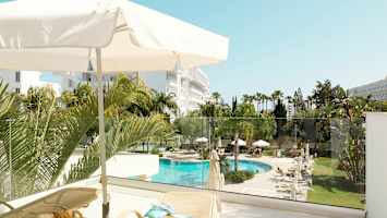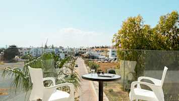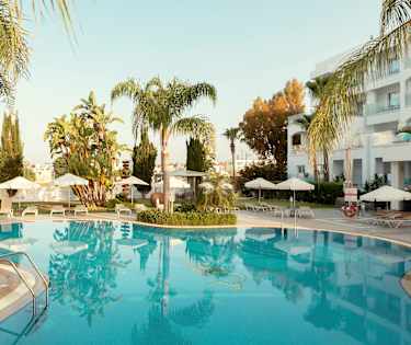 Anesis Hotel -hotellissa on vehreyden ja palmujen ympäröimä allasalue. Voit rentoutua aurinkotuolissa ja tilata virkistäviä juomia allasbaarista.