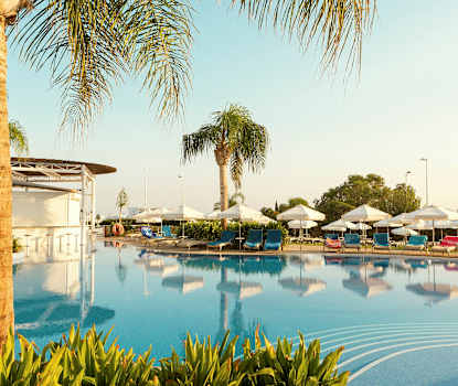 Kaksio, terassi allasalueelle päin