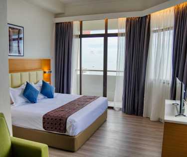 Huoneissa on kylpyhuone (amme / suihku), TV, puhelin, pieni jääkaappi, tallelokero (lisämaksusta) ja ilmastointi.