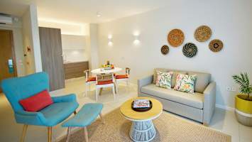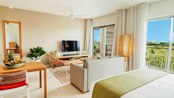 Domaine de Grand Baie -hotellin viihtyisän allasalueen ympärillä on vehreää kasvillisuutta sekä palmuja. Loikoile ja rentoudu aurinkotuolillasi ja käy välillä virkistäytymässä uima-altaassa.