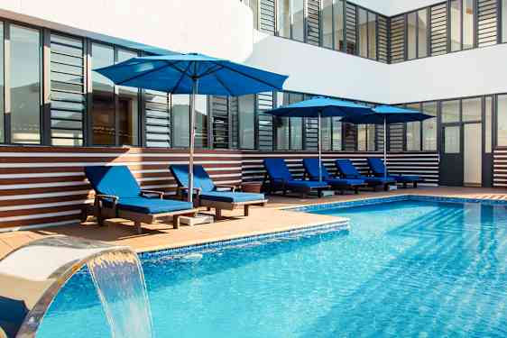 Residence Potosin pienellä allasalueella on aurinkotuolit ja -varjot, joten siellä voit viettää aikaa, paistatella päivää, rentoutua ja vaikka lukea muutaman kappaleen hyvästä kirjasta.