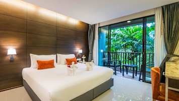 Hyvällä maulla, moderniin thaityyliin sisustetut kahden hengen huoneet.