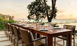 Kun nälkä alkaa kurnia vatsanpohjassa, voit suunnata johonkin hotellin ravintoloista. Illan lähestyessä kannattaa ehdottomasti mennä hotellin kattobaariin ihailemaan auringonlaskua ja Ao Nangin ylle avautuvia näkymiä.