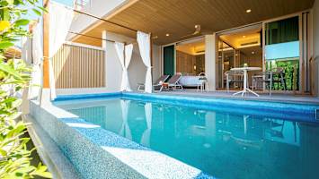 Tervetuloa tyylikkääseen The Little Shore Khao Lak by Katathani -hotelliin, joka sijaitsee rauhallisessa ympäristössä kauniin Nang Thong Beachin tuntumassa Khao Lakissa. Täällä voit majoittua valoisassa ja modernisti sisustetussa juniorisviitissä ja nauttia leppoisista lomapäivistä loikoillen aurinkotuolilla omalla parvekkeellasi tai terassillasi. Ja välillä voit pulahtaa virkistäytymään omaan uima-altaaseen. Hotellissa on myös yhteinen allas merenrannan tuntumassa, ja altaassa on mukava swim-up-baari, josta voit tilata herkullisia cocktaileja ja nauttia samalla merinäköaloista. Kun nälkä yllättää, hotellin pääravintola The Kati tarjoaa hyvin valmistettuja paikallisia ja kansainvälisiä ruokia lounaaksi ja illalliseksi. Lisäksi thaimaalainen à la carte -ravintola Param Para avaa ovensa iltaisin.