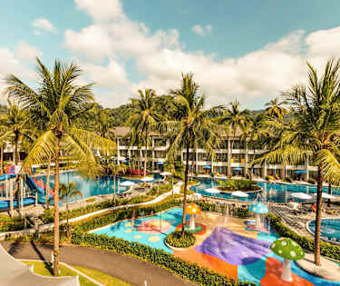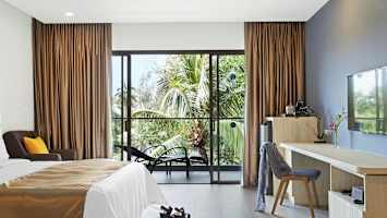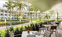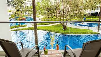 Duplettihuone allasalueelle päin