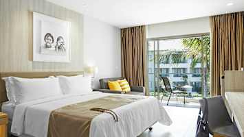 Kahden hengen huone allasalueelle päin