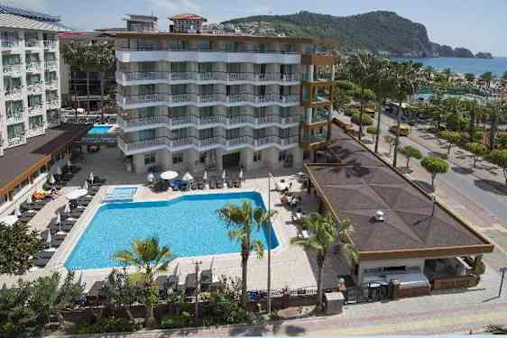 Tämä tunnettu hotelli, joka sijaitsee välittömästi vastapäätä Cleopatra Beach -rantaa, tarjoaa viihtyisää majoitusta vain lyhyen kävelymatkan päässä Alanyan keskustasta. Hotellissa on 193 huonetta kolmessa rakennuksessa ja viidessä kerroksessa. Sen mukavuuksiin ja palveluihin kuuluvat aula vastaanottoineen, hissi, aulabaari, TV-nurkkaus, ravintola savuttomalla alueella ja terassilla, allasbaari, kaksi uima-allasta erillisellä lastenaltaalla sekä sisäuima-allas. Huoneissa on tallelokero (maksullinen), suihku, WC, hiustenkuivaaja, satelliitti-TV, minibaari, musiikkikanavat, yksilöllisesti säädettävä Wi-Fi-yhteys, ilmastointi, suoravalintapuhelin ja parveke. Kaikki huoneet ovat savuttomia, ja huonepalvelu on saatavilla; lisäksi hotellista löytyy esteettömiä huoneita. Spa-osastolla on lämmitetty sisäuima-allas (avoinna marraskuusta maaliskuuhun), turkkilainen hamam, sauna, kuntosali ja hierontahuoneet. Asiakkaat voivat käyttää saunaa maksutta klo 16. 30–18. 30. Maksuttomia aktiviteetteja ovat pöytätennis, elävää musiikkia kahdesti viikossa sekä Wi-Fi-yhteys aulassa ja huoneissa. Aurinkovarjot, patjat ja aurinkotuolit ovat maksutta käytettävissä uima-altaan alueella. Maksullisia aktiviteetteja ovat rannalla pelattava lentopallo, neljän julkisen tenniskentän käyttö kadun toisella puolella, huonepalvelu, kampaaja, pesulapalvelu sekä erilaiset paikallisten palveluntarjoajien tarjoamat vesiurheilumahdollisuudet. All-inclusive-majoitus sisältää aamiaisen, lounaan ja illallisen buffetmuodossa, minkä lisäksi tarjolla on myöhäinen aamiainen, iltapäiväkahvi ja -kakku sekä jäätelöä. Paikallisia alkoholillisia ja alkoholittomia juomia on saatavilla hotellin baareista klo 10. 00–23. 00. Hotelli sijaitsee tilavan, jyrkästi viettävän hiekkarannan välittömässä läheisyydessä. Huomioithan, että aurinkovarjot ja aurinkotuolit ovat saatavilla rannalla erillisestä maksusta.