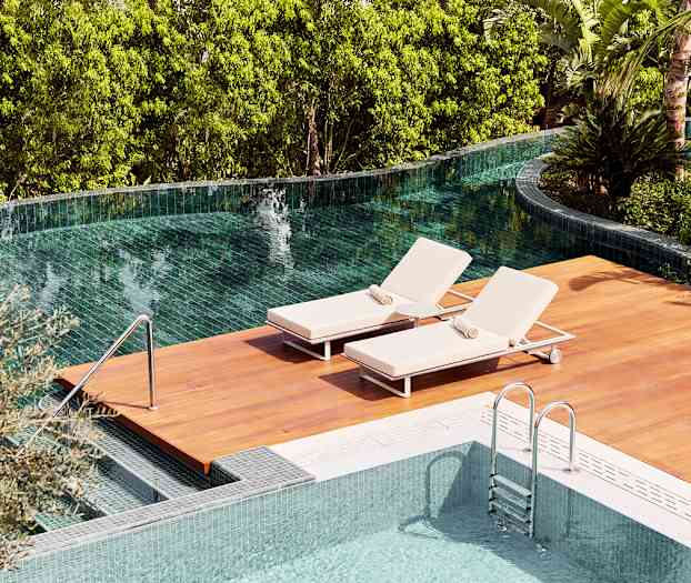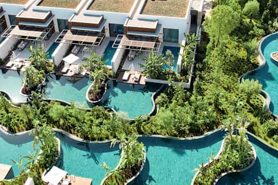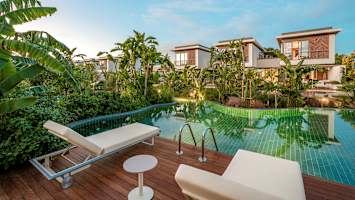 Asut ylellisesti ja kauniisti sisustetussa huvilassa, joissa jokaisessa on suuri terassi ja oma uima-allas. Voit mennä uimaan suoraan omalta terassiltasi. Hintaan sisältyy myös huippuluokan palvelu, kuten huonepalvelu ja yksityinen kuljetus lentokentältä.