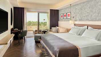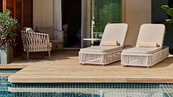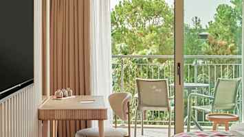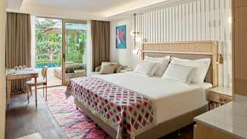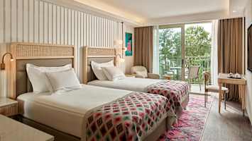Kahden hengen huone allasalueelle päin